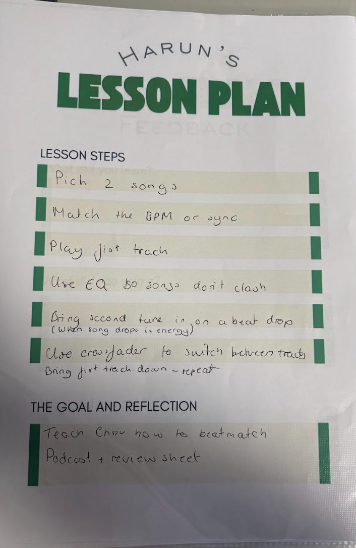 I used the DJ space to practise parts of my set, focusing on blending and beat matching tracks and experimenting with different effects. At the start, it felt a bit stressful because the room was quite busy and I was aware of other people listening. I wanted to see how people reacted to my sound and whether they were enjoying it. This helped me realise that choosing the right music for the right audience is a big part of a DJ’s role, and something I want to continue developing as an artist.