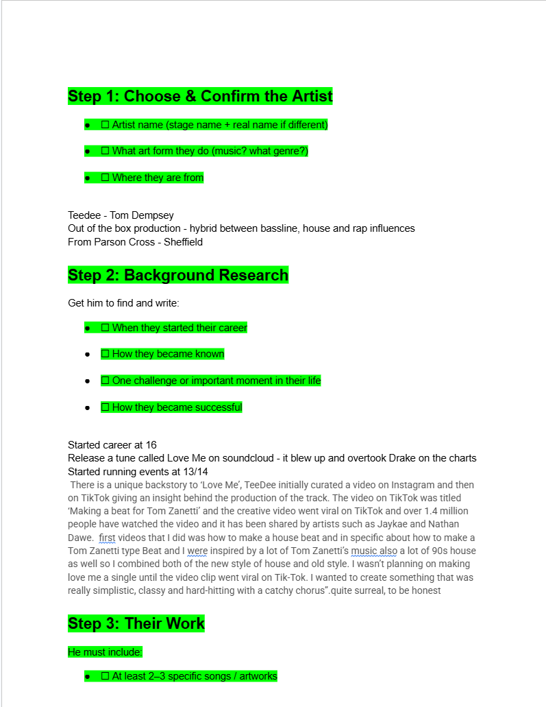 Reflecting on my artist inspiration, I learnt more about TeeDee and how he has become the DJ he is today. I spent time researching him and recording a video so you can understand why I picked him as my inspiration.