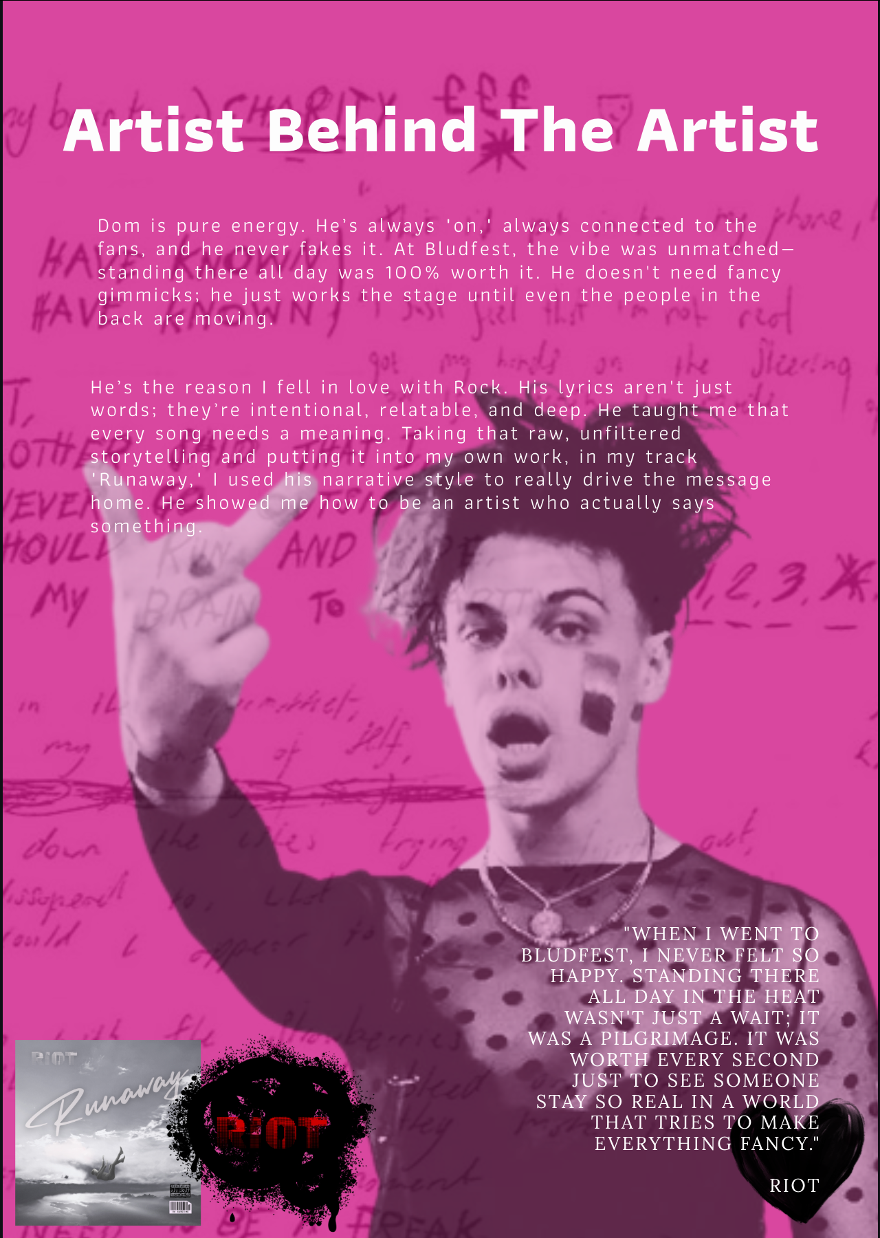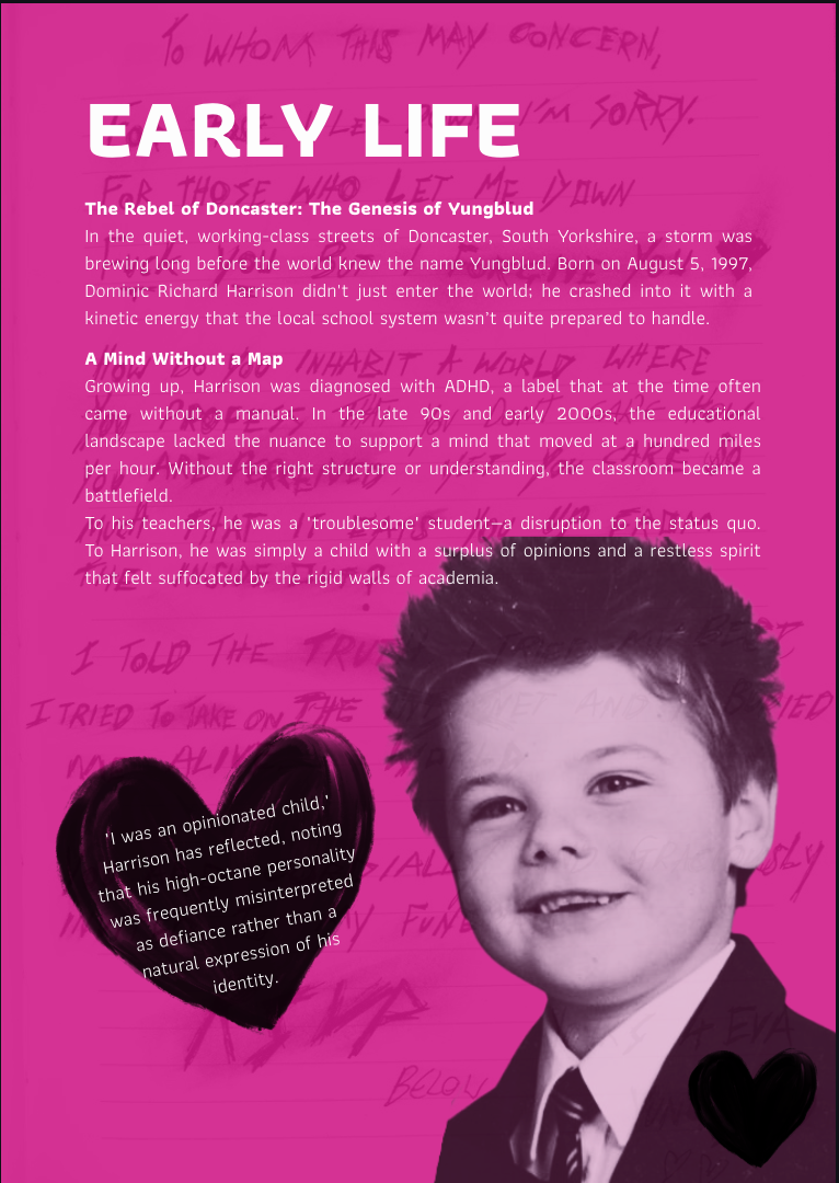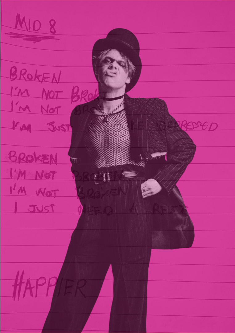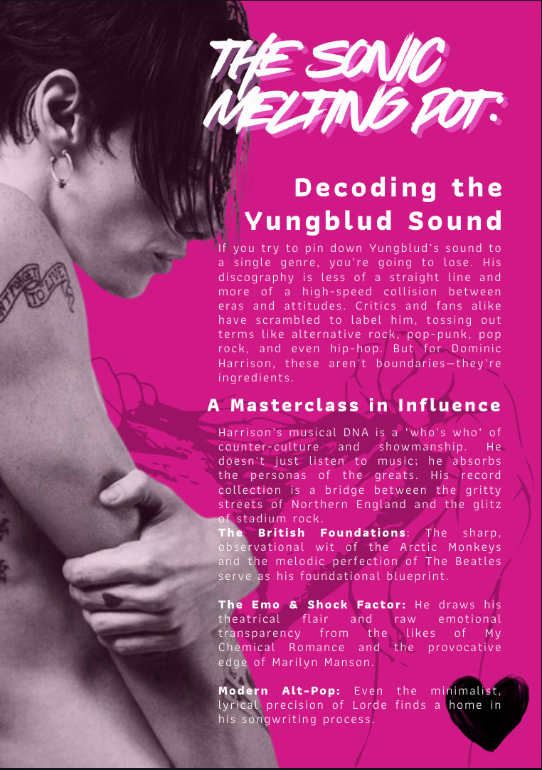 This is my Artis inspiration. I have been inspired by the best artist in Doncaster, YungBlud. Hes genuinely honest with his music and talks about struggles and how people can get through them. I love his PunkRock style.