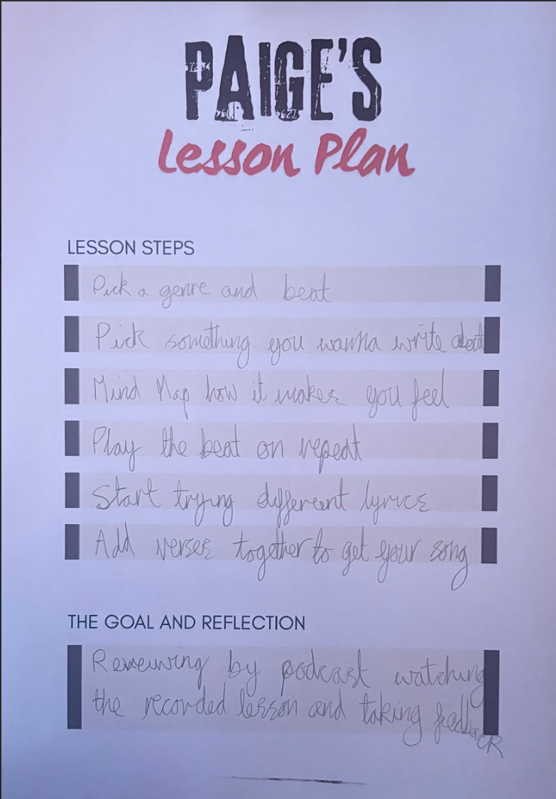 I’ve created worksheets on Canva to make the writing process easier for my lesson. One is to make the brain storming part easier, with a space to add your backing track name and the second one is to write down the name of the song created and the song. I will also practice delivering my skill share to make sure I have all the tools I need.